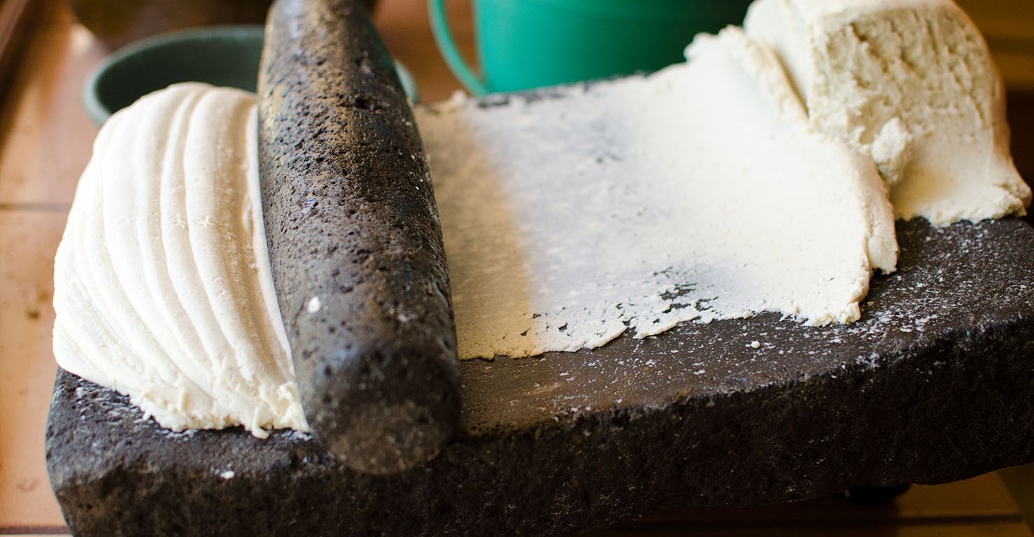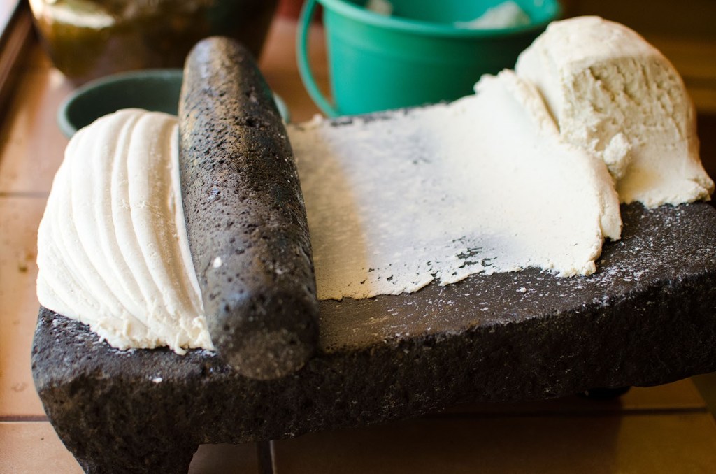 Use the whole, moist kernels in soups or stews – corn treated like this is called posole or hominy. Or, grind them through a food mill to make masa. If making tortillas, grind the masa once more in a stone grinder (metate) to get a fine, smooth consistency. Refrigerate any unused masa, and use it within 3 days as it can become too sour to eat. Grinding masa on a metate can add some extra nutritional value to the corn and if the metate is only washed with water it will add a probiotic factor. DO NOT wash your metate (or molcajete) with soap as it will permeate into the volcanic rock and will flavour everything ground on (or in) it.