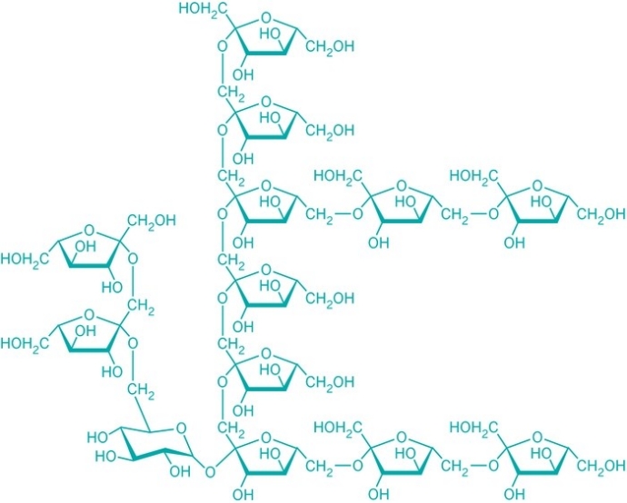 Agavins are a many branched molecule and it is this characteristic that is advantageous for fermentation as these branches provide bacteria with multiple points for initiating fermentation. This fermentation can occur in aguamiel when it is converted into pulque or can be by bacteria in the gut of the host which is where the potential health benefits of agavins arise.