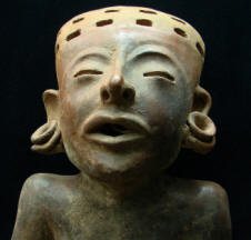 The hands of Xochipillis statue appear to have at one stage been clasping something but are now conspicuously empty and various theories have been put forward as to what they may have initially held. As a deity of music it has been posited that they may have held rattles possibly like the one pictured below. The rattle is also a valuable tool of the shaman and apart from its symbolic and ritual significance it plays an important role in the generation of trance states of consciousness.