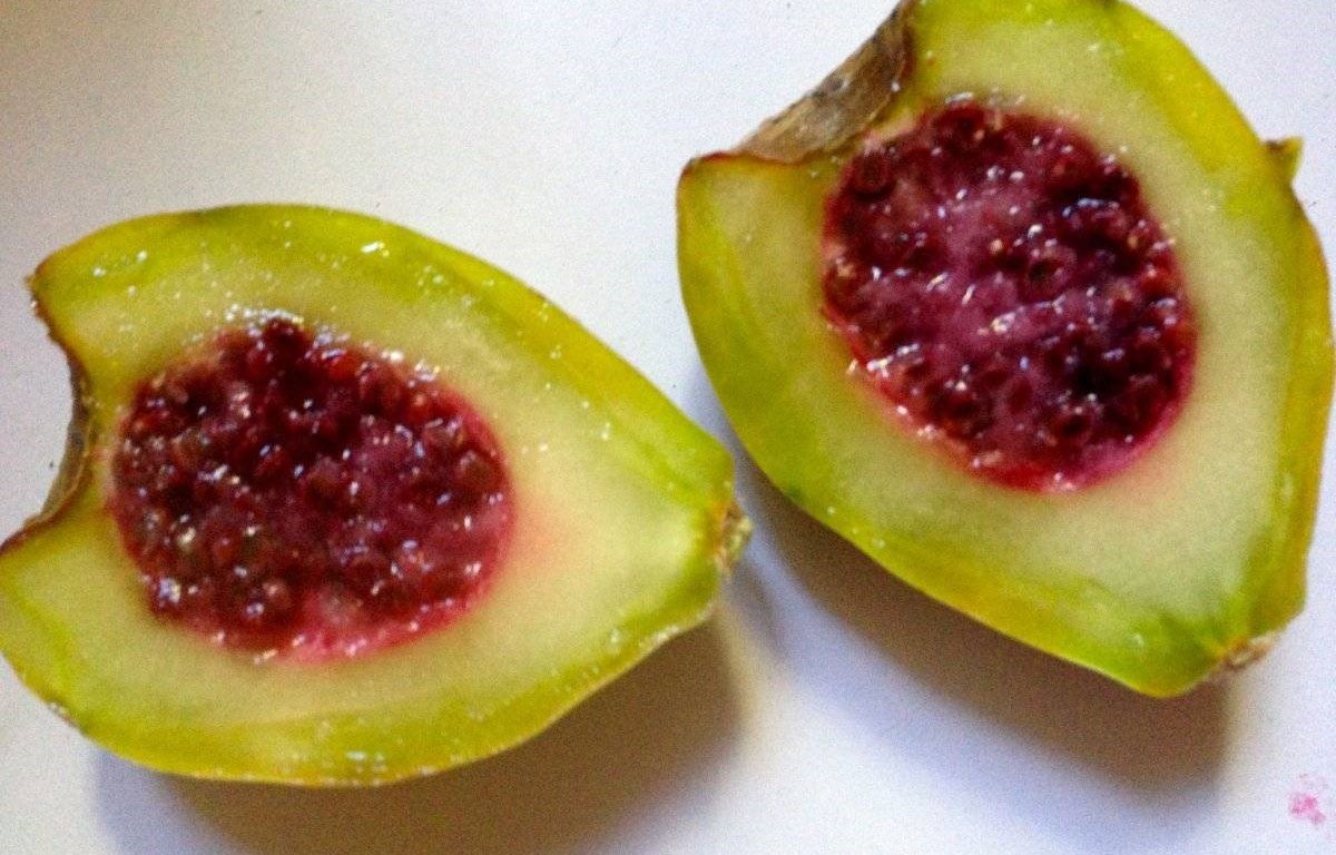 The seed cavity of the Xoconostle is centralized, whereas other prickly pear varieties have seeds embedded throughout the flesh. Its skin is soft and edible unlike the tuna. The xoconostle is characterized by its edible skin which may be around one centimetre thick (its seeds too are edible). Like its prickly pear cousin, it is covered in clusters of small spines that need to be removed before cooking with the fruit. The woman you see processing them in a Mexican mercado will be using her hands. DON’T BE FOOLED. Her hands are tougher than yours. You will probably need to use gloves. The flavour is described as complex with a sour tang and an acidic finish. In Nahuatl the prefixes “xoxo” or “xoco” denote sourness.