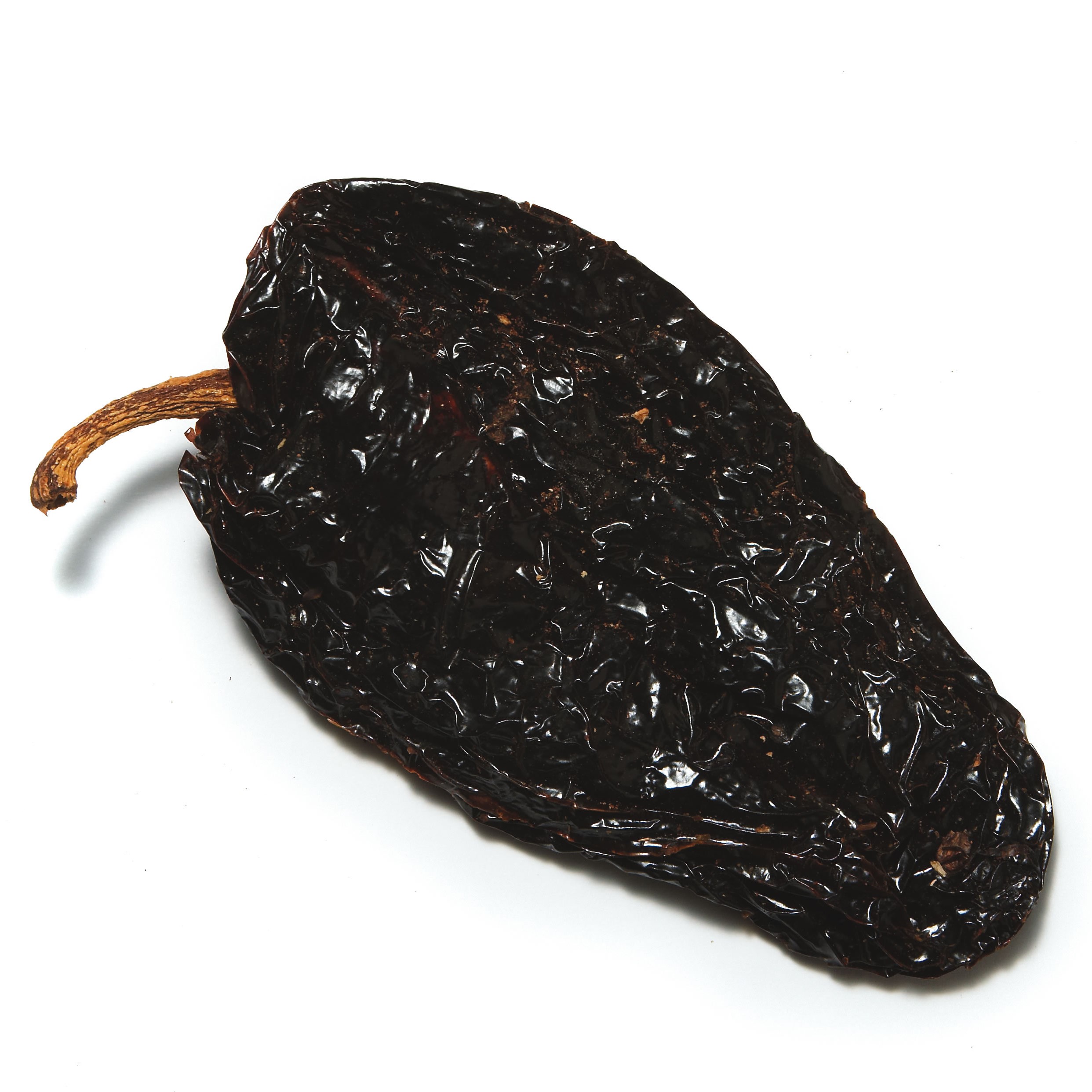 The ancho chile is the dried form of a poblano chile. Both the ancho and the pasilla are mild chiles with complex flavours. The ancho is one of the chiles commonly used in making the famous mole poblano sauce of México.