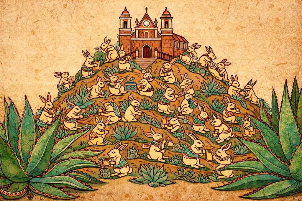 Pulque was consecrated to rabbits as a rabbit was integral to the story of the discovery of pulque. The leader of this motley crew was Ome tochtli (Two Rabbit) who was also called Tepoztecatl and drunkenness itself was measured in rabbits with 400 rabbits being the highest level of intoxication (1).