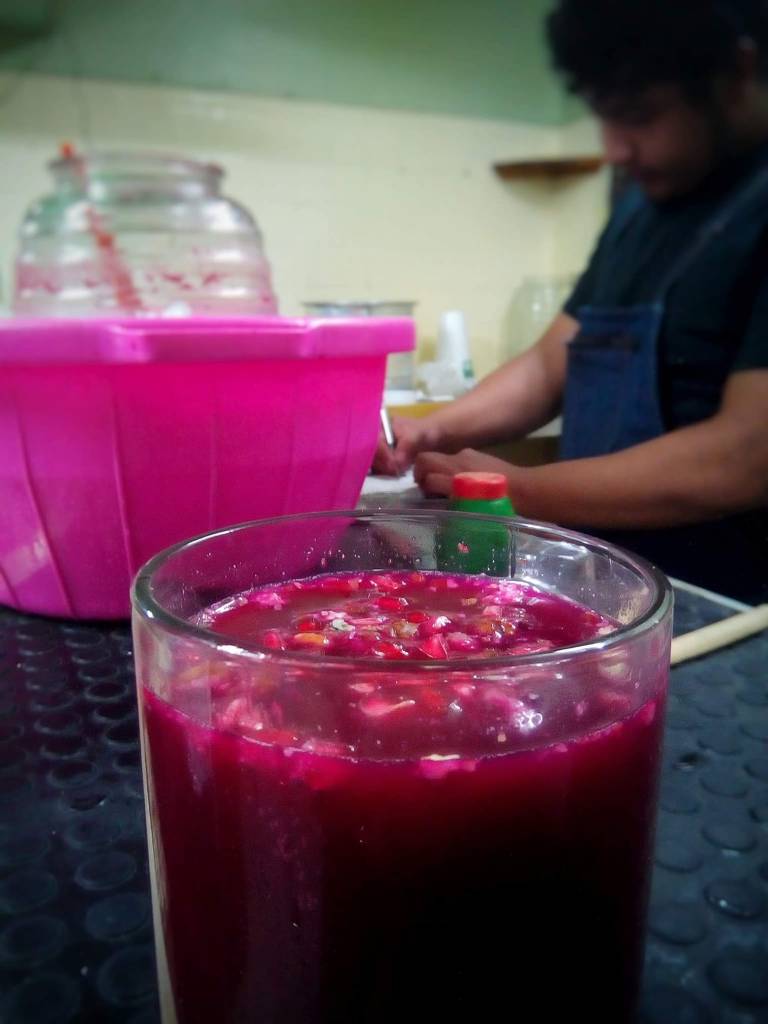 - Blend the fruit with a little bit of pulque;