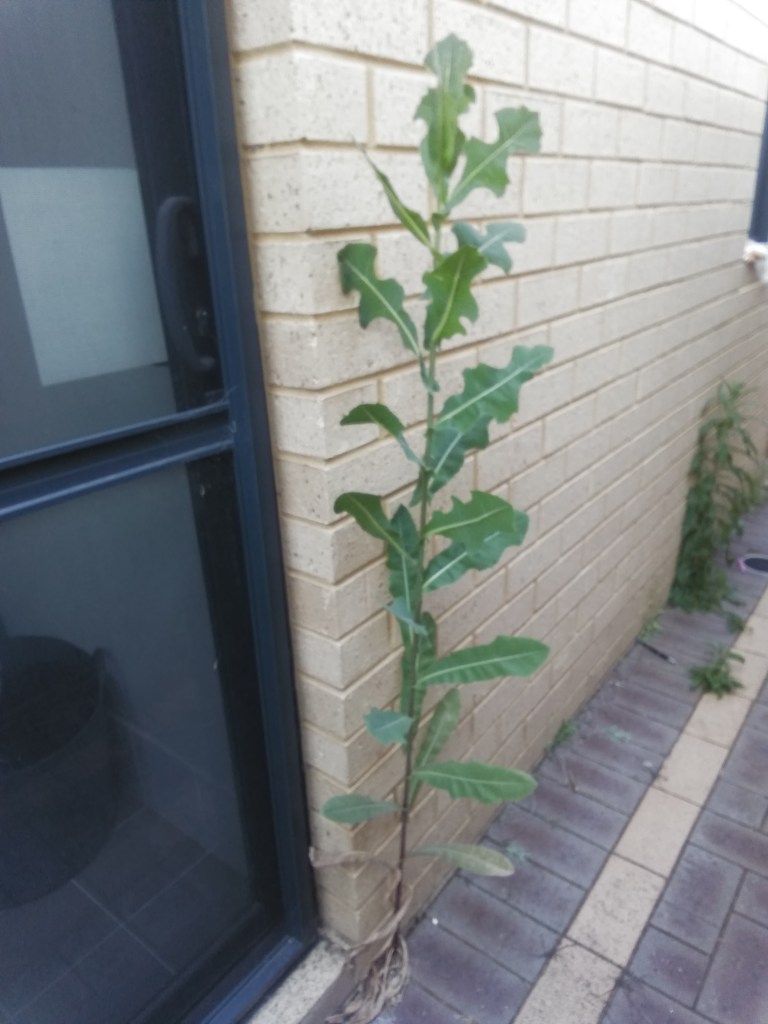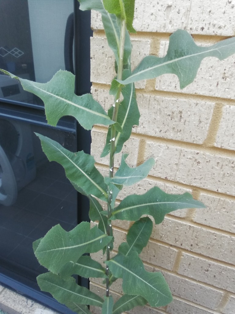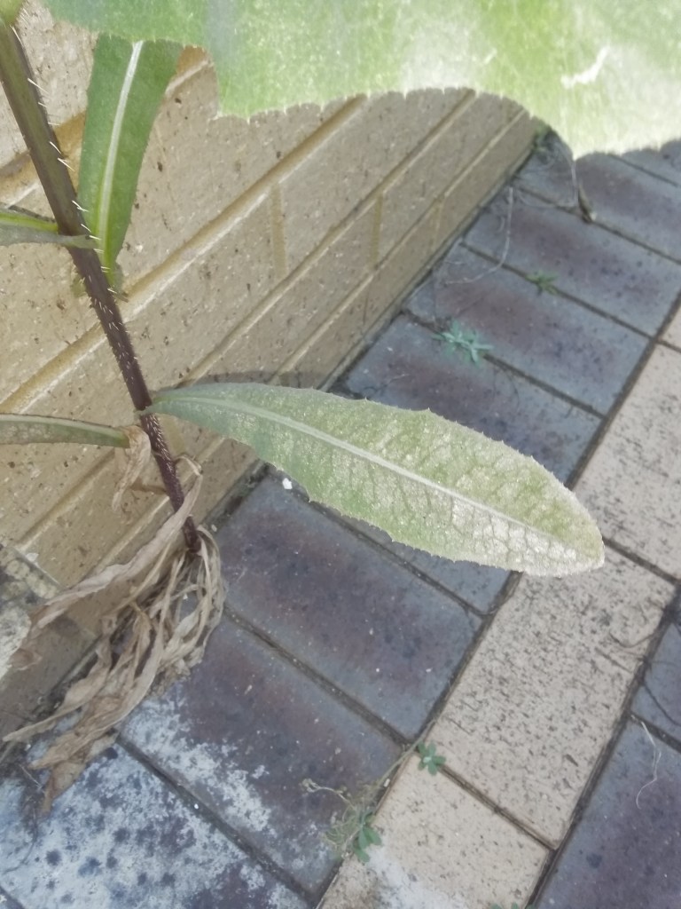 I “found” this plant today by the laundry door. It has been allowed to grow this size as it has missed my landlord mandated weeding as we don’t really use this door. This plant has a somewhat unusual structure regarding its stem height and leaf arrangement due to its somewhat inhospitable growing environment.