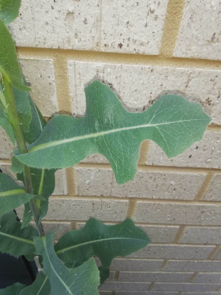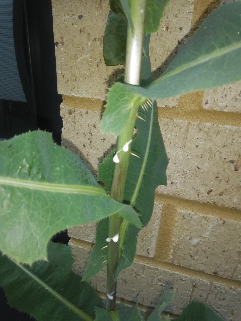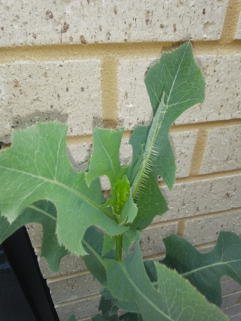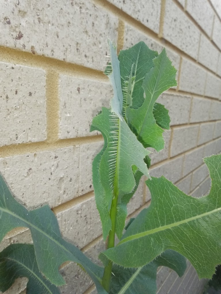 We are now at the top of the plant. These leaves, although somewhat ferocious looking are perfectly edible. They are soft and once the prickles are removed can be eaten raw. This plant is not far from flowering, after which it becomes more bitter to eat. It is however perfectly placed for me to attempt making some lactcarium.