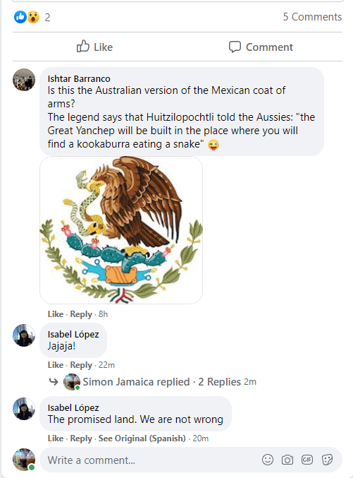 Well it appears that the prophecy might also be fulfilling itself far from the shores of Anahuac. In Australia, a place that is about as geographically far from México as you can get, many Mexicans have journeyed far from the lands of their birth in search of a new home. Like the wandering Mexica they have ventured into the wilderness and, like the Mexica, it seems that a similar prophetic and revelatory sign has appeared that indicates they are indeed in the right place.