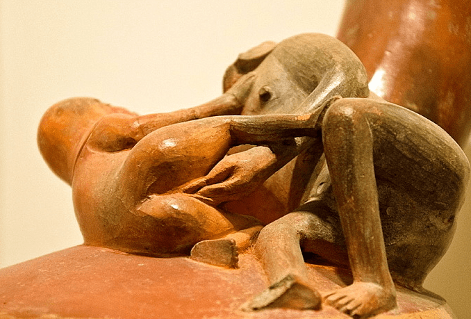 Taking this pottery and using it as definitive reasoning for any one particular sexual behaviour is the equivalent of visiting the Pornhub website and assuming that it depicts the “norms” of any given society. These are all Peruvian works of artistry (as are the majority of images that you will find if you search for this type of erotic ceramics). This culture was very different to that of the peoples of Mesoamerica and even though there may have been contact between the two neither one can be taken as representative of the other.