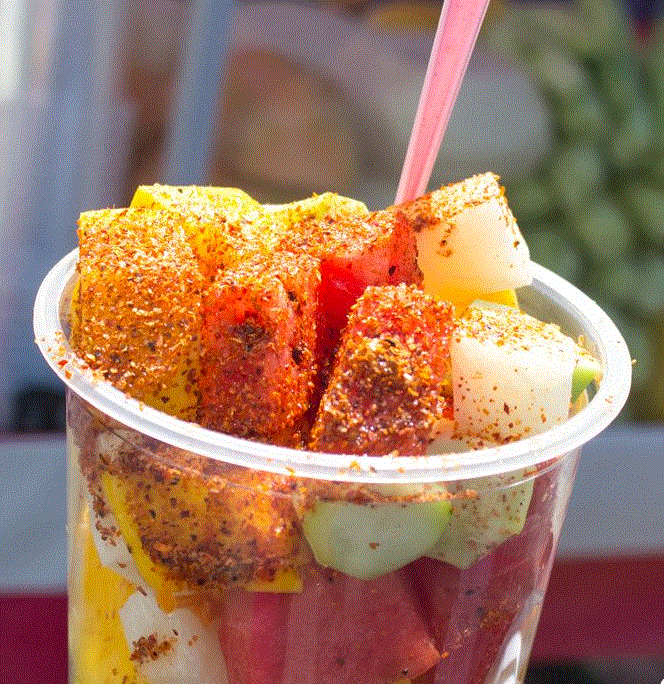 Other important ingredients include two quintessentially Mexican flavours, chamoy and taijin. Chamoy adds a sweet/sour flavour and tajin (1) backs this up with its own sweet/salty/sour/chile tang
