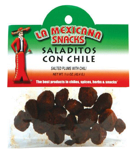 Saladitos are plums or apricots, which are dried, salted and which can also be sweetened with sugar and anise or coated in chili and lime. A common misconception is that saladitos and chamoy are the same thing; saladitos are the dried salted fruit, whereas chamoy is made from the leftover brine.