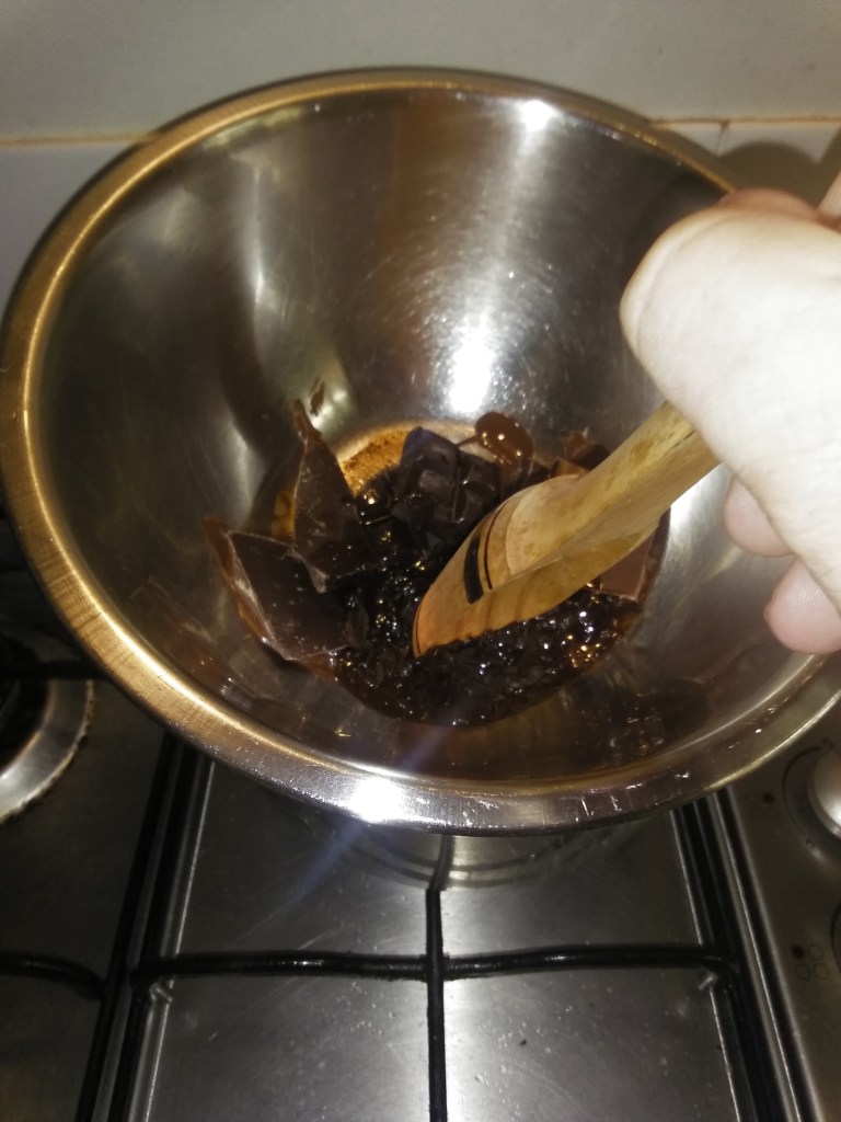 Allow the chocolate mix to cool a little. The choc mix is interesting. At this stage you could easily add cream and make a ganache (1) and be used to add layers of flavour to or ice a cake.