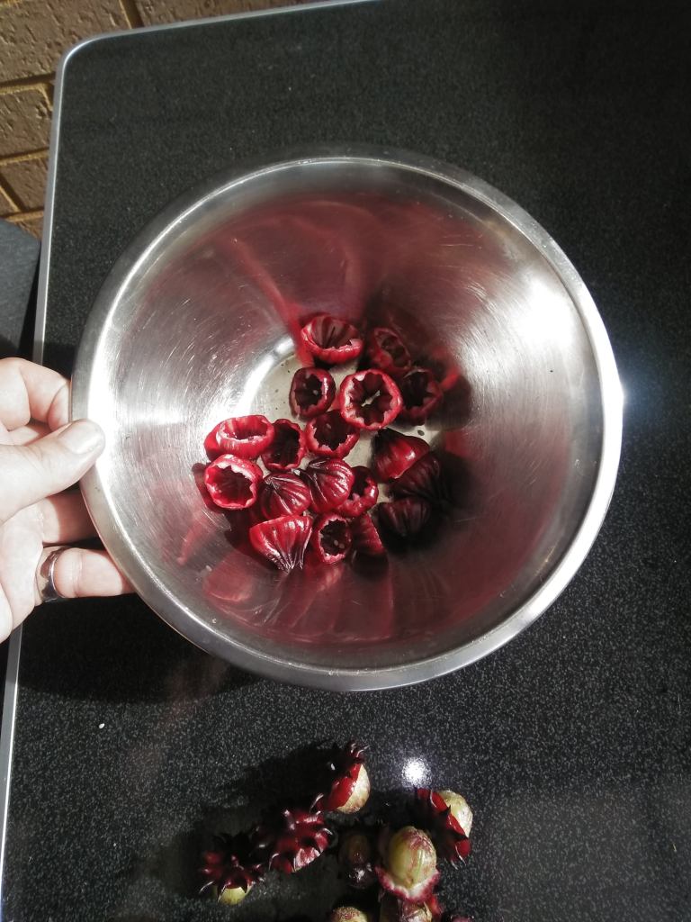 I came across this recipe for a flor de jamaica jam (1) which made me giggle a little. You see, where I come from, C bomb is a most heinous swear word. This however was not the original authors purpose (I hope). The C Bomb being referred to is a large dose of vitamin C as provided by the calyxes of the hibiscus flower known in México as flor de jamaica. Now as a herbalist/naturopath I do believe that these flowers have medicinal utility (2) and the health benefits of drinking agua de jamaica daily (3) are proven (2). I would not however rely on it to supply an abundance of Vitamin C (see tables at bottom of this Post for Vitamin C content comparisons). The addition of rosehips to the recipe boosts the C content and adds to the medicinal qualities of the recipes primary purpose. The original author also recommended not consuming too much of the jam lest you activate its diuretic properties.