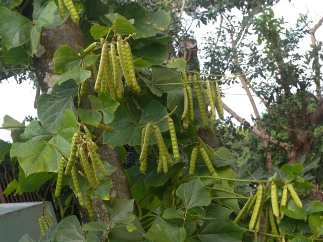 Cuajilote : (Parmentiera aculeata) a tree that lives in the low deciduous forest in wide extensions in the south and central Mexico . Its flowers grow directly on the trunk of the tree. The fruit is elongated and fleshy with longitudinal grooves and is edible. Its leaves are composed of 2 to 3 leaflets. The word cuajilote comes from the Nahuatl “ cuahuitl ”, tree, and “xilotl ” = Corn of a tree. It can be eaten raw or cooked; Its consumption is practically restricted to the areas where the cuajilote thrives, where it is also used as a forage feed. This tree is used as a laxative and diuretic in several regions of the centre and south of the country, mainly in the State of Mexico, the Federal District, Hidalgo and Puebla. It is also recommended to treat kidney ailments and its treatment includes the fruit, the bark, the flowers and the root, which are boiled and ingested as tea. In other cases such as stones and urinary tract, it is effective to grind the fruit and ingest the extract or roast it and eat it. In addition, cooking the flower, the root or the fruit is a good diuretic. It is also used for other diseases such as asthma, claw, flu and cough; the flowers are boiled with tejocote and sweetened to drink warm on an empty stomach for two weeks.