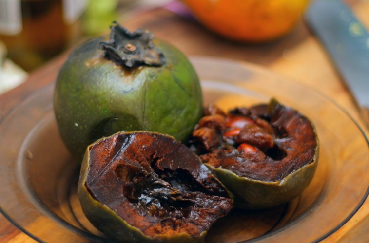 Zapote : Sapote (from Nahuatl tzapotl) is a term for a soft, edible fruit. Black sapote (Diospyros nigra), from eastern Mexico south to Colombia, is probably the original Aztec tzapotl.