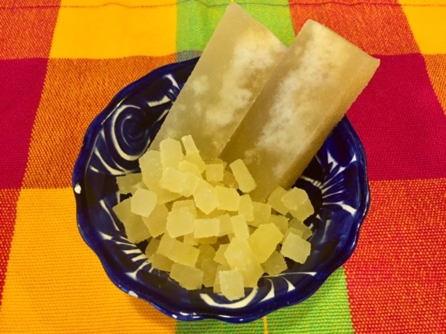 The biznaga cactus is a source of different culinary products, but it is most widely used in confectionery, using its preserved pulp which is known as citron (or acitrón). This cactus has a fibrous and firm pulp that is juicy and sweet and is much appreciated and used in traditional Mexican cuisine. Small pieces of the cactus stem flesh are boiled in water with large amounts of sugar. They are air dried to allow the sugar to crystallize, producing attractive candies.