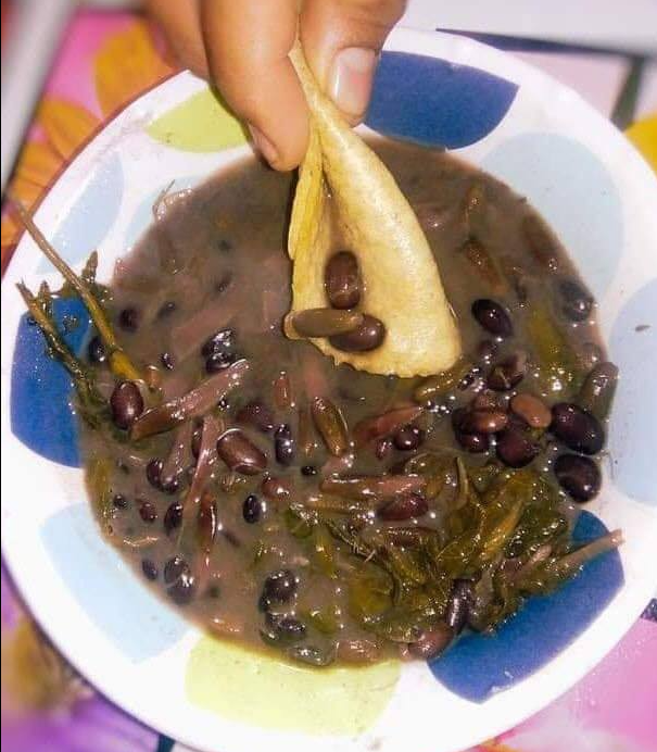 - Once the beans are a bit soft, add the pemuche, the epazote and the chopped onion and the oil.
