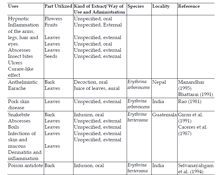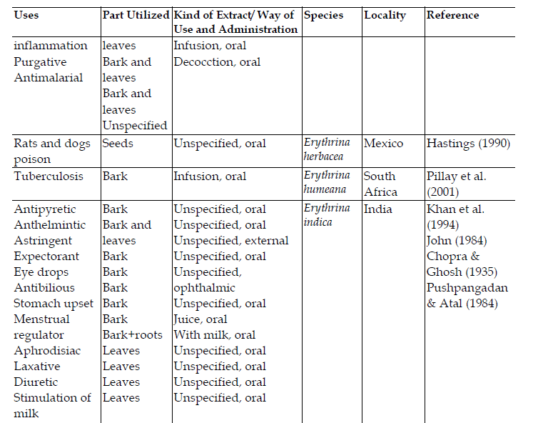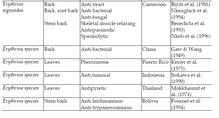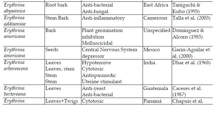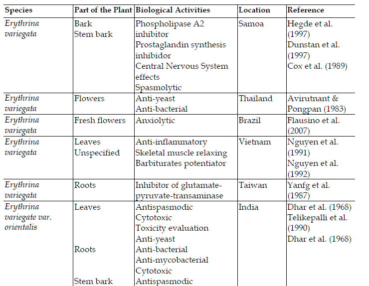 - Araújo‐Júnior, J., Oliveira, M., Aquino, P.G., Alexandre-Moreira, M.S., & Sant’ana, A. (2012). A Phytochemical and Ethnopharmacological Review of the Genus Erythrina.