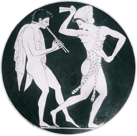 Depictions of castanets (krotala) in ancient times (below).