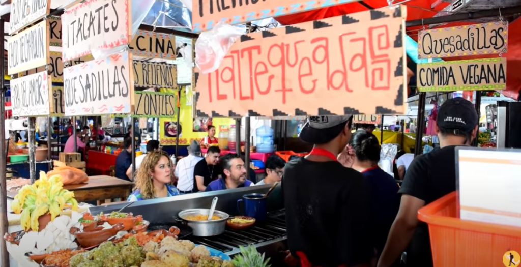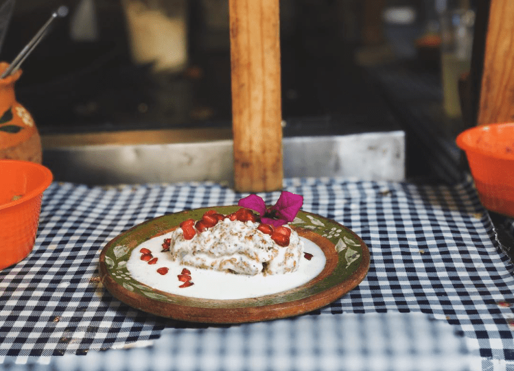 Chef Emiliano Marquina Cruz of Nonantzin (1), a proponent of comida prehispanic artesanal, runs a stall inside the Mercado de Tepoztlán in Morelos and his tlaltequeada con flor de jamaica and mole de amaranto is an example of a prehispanic vegan dish (2). The recipe for one of Chef Emilianos tlaltequeadas follows a little further down.