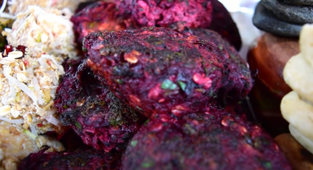 - Betabel con pétalos de rosa de Castilla, flor de Jamaica, tallos de apio y avena tostada