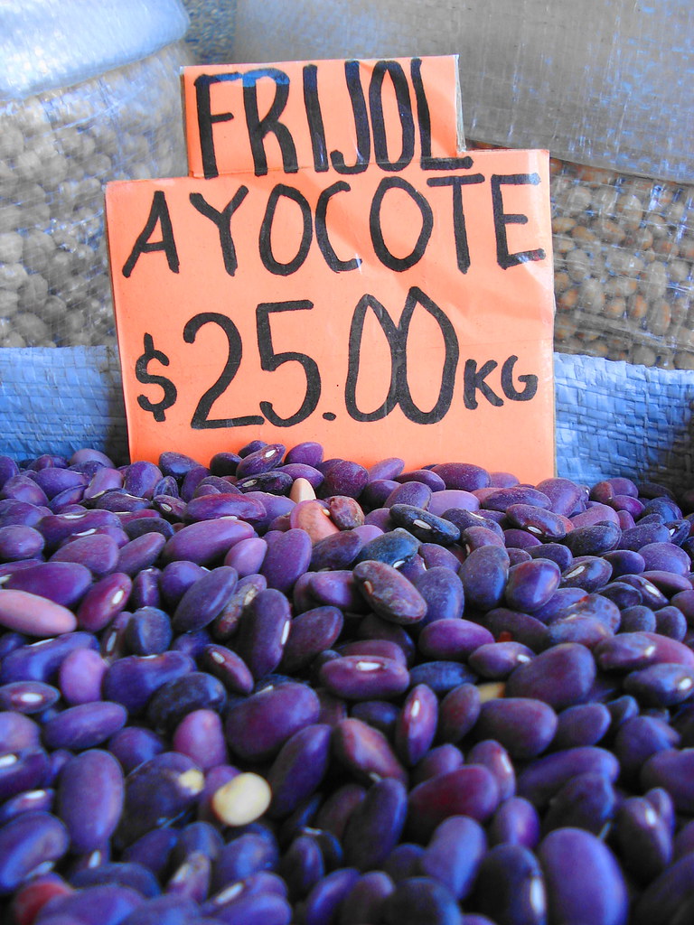 Ayocote (Phaseolus coccineus leiosepalus), also known as ayeócotl in the native náhuatl language, is a climbing legume, with pre-Hispanic origins. Ayocotes are one of the crops used in the Milpa agricultural system, whereby corn, squash and beans are grown in the same field at the same time. Its function is to increase levels of nitrogen in the ground, so as to compensate for the amounts consumed by squash and corn. Just as with squash seeds, Ayocote seeds belong to the group of the oldest domesticated plants of Mesoamerica. According to some researchers, Ayocote beans were domesticated in the Tehucán Valley between 4000 BC and 2000 BC.