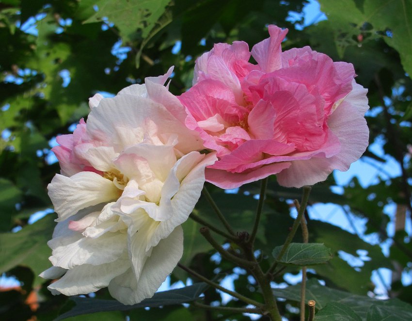 Fu Rong Gen is Hibiscus taiwanensis (or the Taiwan cotton rose) , a native plant in Taiwan, which lives in China and Taiwan. The form of flower is different from Hibiscus mutabilis (of which it is a variety) in China, which is “double” flowered.