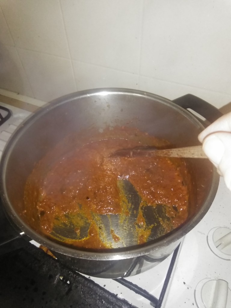 - cook over med/high heat until it thickens and turns several shades darker. This process is integral in the construction of many Mexican “sauces”