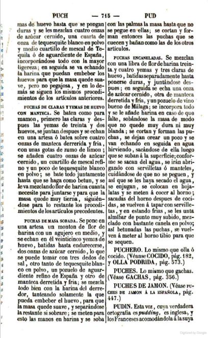 This is obviously the same recipe. It comes from a book less than 10 years older than the previous recipes but the word Puchas is noted as Puches. Now so far I have determined that a puche is a porridge and a pucha is a biscuit (bizcocho).