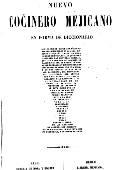 - Galvan Rivera, Mariano. (1845) Diccionario de cocina o el nuevo cocinero mexicano en forma de diccionario .