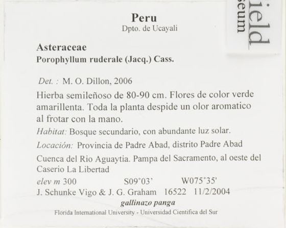 - See Posts : Quillquina : Porophyllum ruderale; Porophyllums : Medicinal Utility : A Recap, and Pápaloquelite : Porophyllum macrocephalum