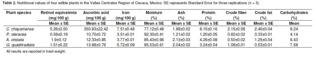 - Bautista-Cruz, Angelica & Arnaud-Viñas, María & Martínez-Gutiérrez, Gabino & Sanchez-Medina, Patricia & Pérez-Pacheco, R.. (2011). The traditional medicinal and food uses of four plants in Oaxaca, Mexico. Journal of Medicinal Plants Research.
