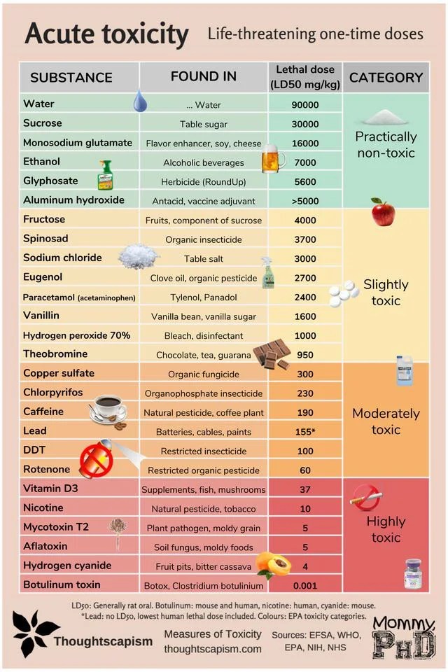 LD50 less than 500 mg/kg indicates high toxicity. LD50 500 to 1,000 mg/kg indicates moderate toxicity. LD50 1,000 to 2,000 mg/kg indicates low toxicity.