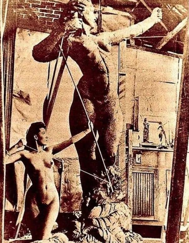 The young Helvia Martínez Verdayes (then only 16 years old) (1) modelled nude for the artist. Helvia was studying to be a secretary at the Miguel Lerdo de Tejada school and worked as a secretary in the offices of Pemex (2). Helvia refused any financial remuneration in exchange for keeping her participation as the image of the statue a secret. This secret remained for years until in 1992 she revealed her identity in her book El Secreto de la Diana Cazadora (The Secret of Diana the Huntress).
