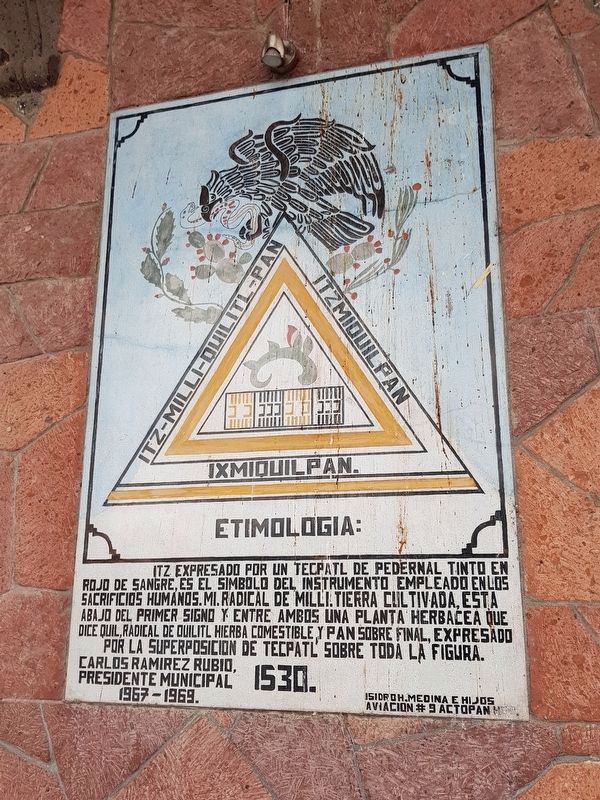 The primitive name of Ixmiquilpan was “Zectccani” (1). A word of Otomi origin which means “Purslane”. Later, in the Nahua language it was called “Izmiquilpan”. However, another version explains the meaning of “Itzmiquilpan”, to be derived from “Itztli” (2) which means “razor”; and “milli” which means “cultivated land” (3), plus the word “quilitl” (4), which means “edible herb”, and finally “pan” (5) whose meaning is “about” (5). So it means: “Town located on grass crops whose leaves are razor-shaped.”