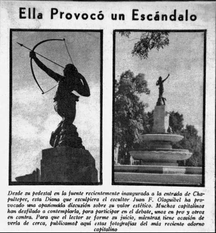 On October 10, 1942, the bronze sculpture was inaugurated in La Puerta de Los Leones. Her original name was: “La flechadora de las estrellas del norte” (“The Arrow of the North Stars”) and her impact on society at the time was such that they ordered her to wear a loincloth.