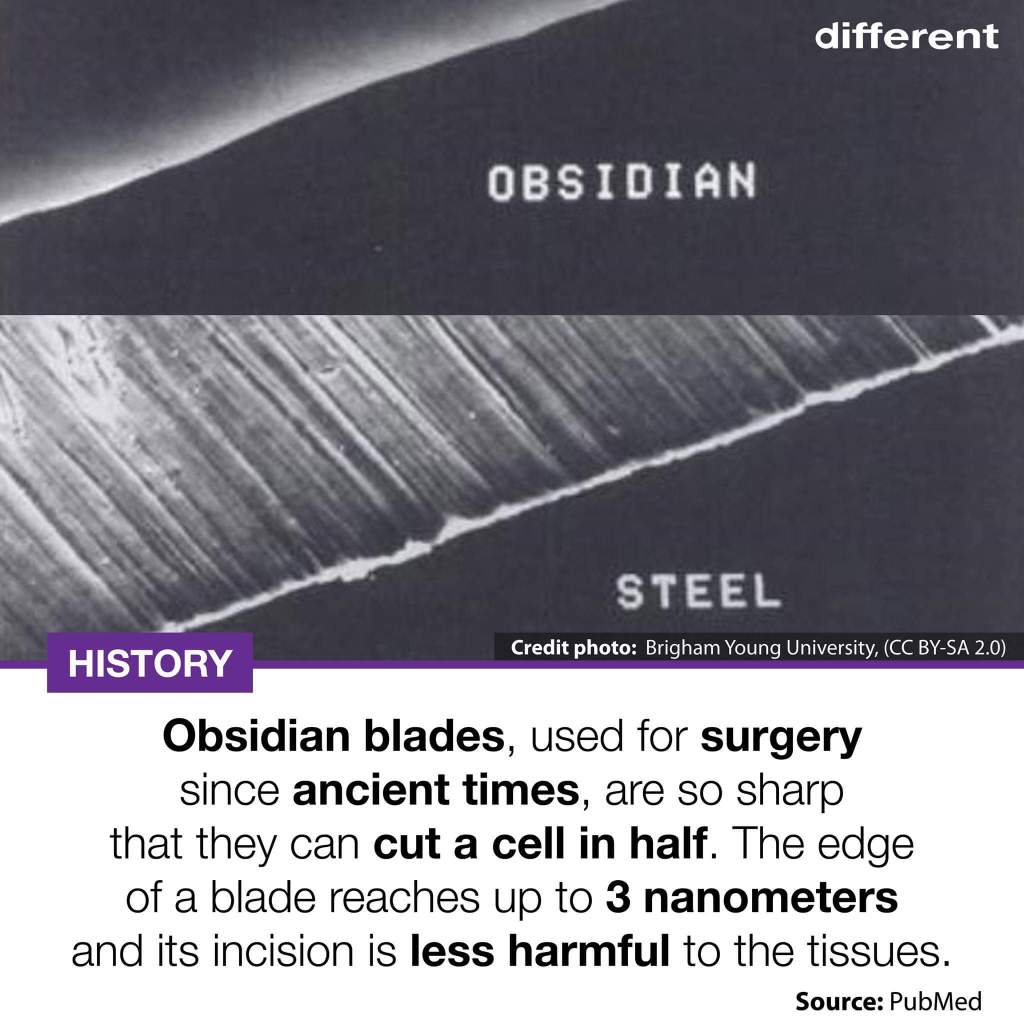 Fine blades made from obsidian also have use in surgery. The use of scalpel for surgical incisions dates back to at least 2100 BC. Obsidian scalpels have been found in a Bronze Age settlement in Turkey (Nagargoje etal 2019) and ancient Egyptians made incisions for embalming with scalpels of sharpened obsidian. Studies have shown that cuts made by obsidian blades are finer and heal with less inflammation and scar tissue thickness than steel blades.(Disa etal 1993)