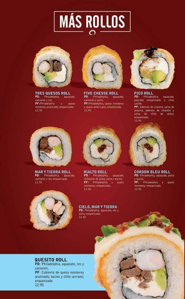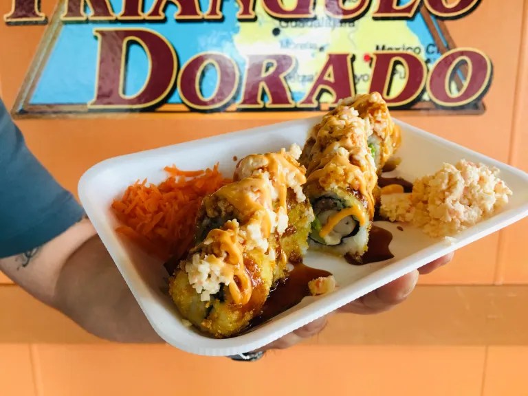 The rolls include cooked shrimp, cilantro, American cheese, and bacon. There’s mozzarella, chipotle sauce, and cream cheese — known endearingly in Mexico as “queso filadelfia”, some are deep-fried