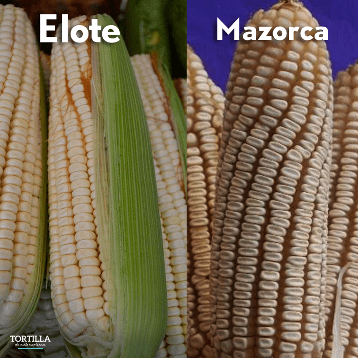 They are the same, but one is fresh and the other is ripe and dry. When the corn is cut fresh it is known as elote, which is when we eat it boiled or in esquites. When the grain is allowed to mature, it is called an ear of corn (mazorca de maíz). This ripe and dry grain is what we use to make tortillas or tamales. (1)