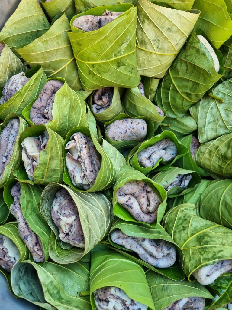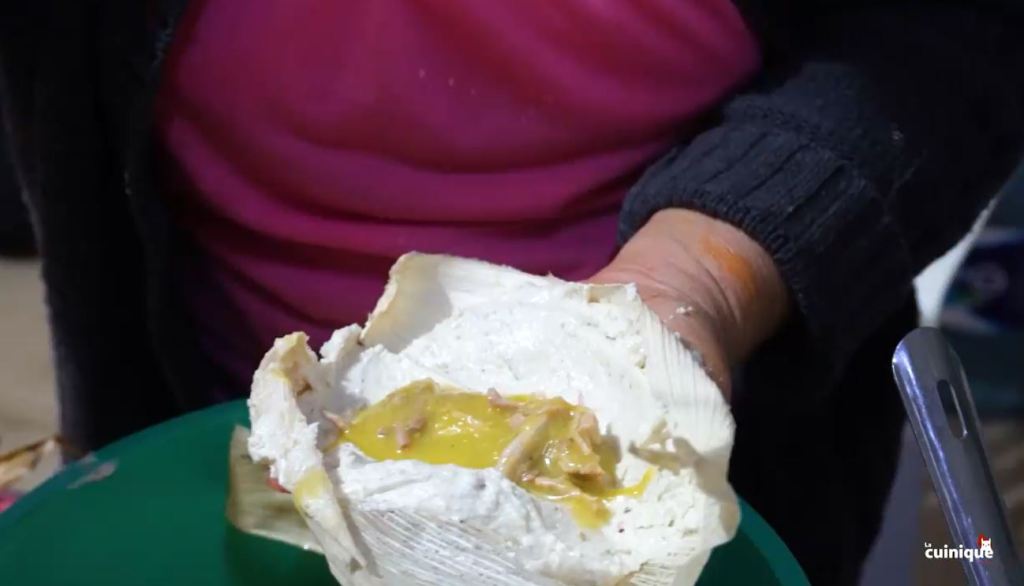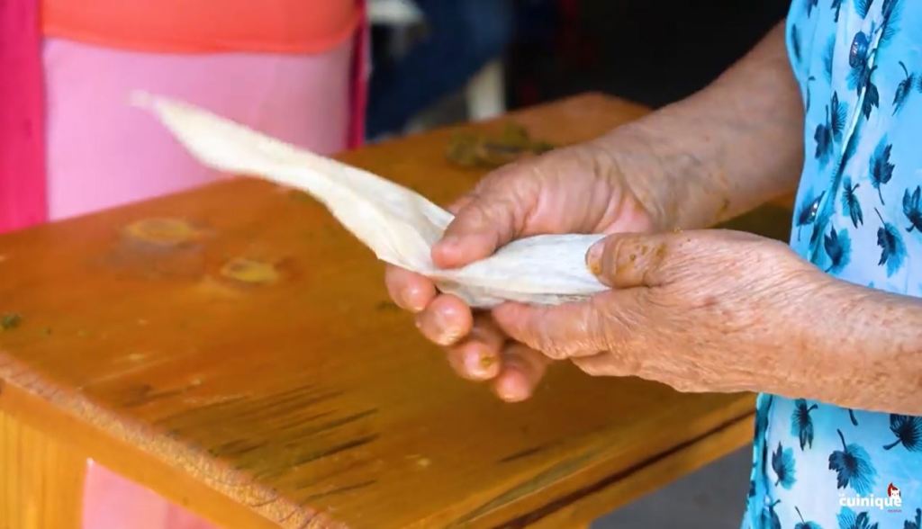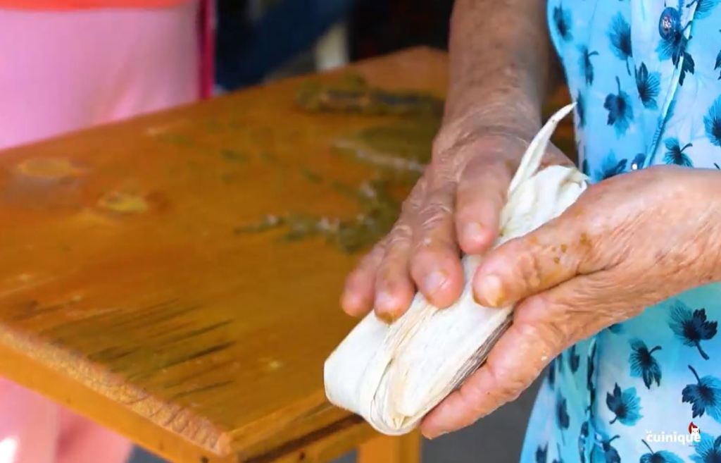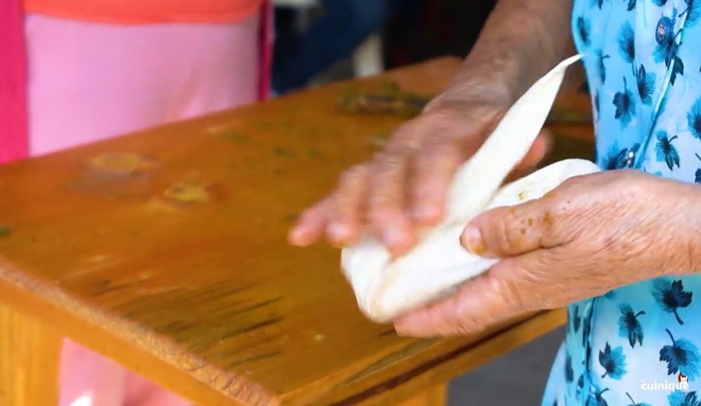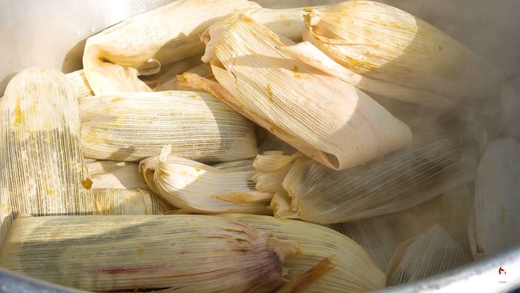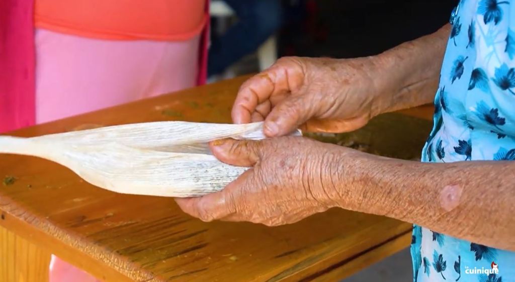 pan de maíz envuelto en hojas y cocido en olla (cornbread wrapped in leaves and cooked in a pot)
