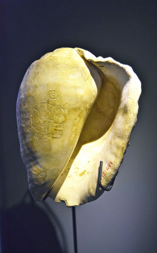 enconchado (feminine enconchada, masculine plural enconchados, feminine plural enconchadas)