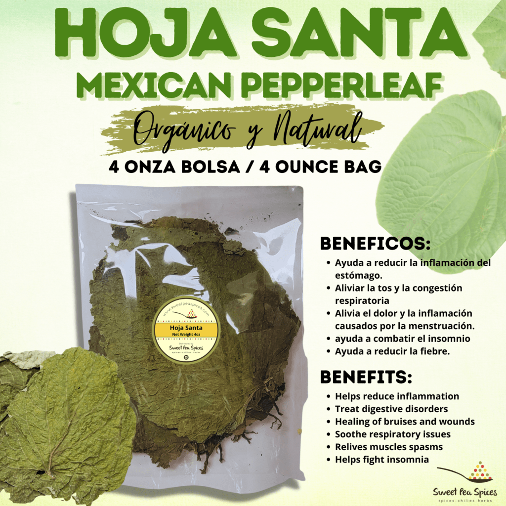 Hoja santa. Holy leaf (also called acuyo) has an anise like flavour and is a relative of the betel leaf common in Asian cuisines.