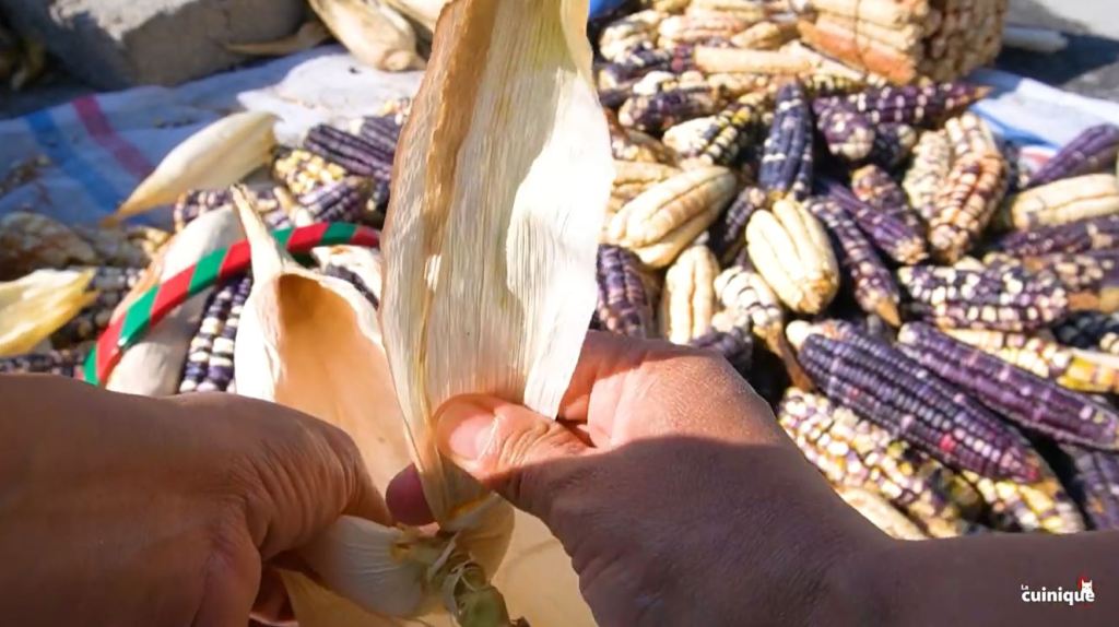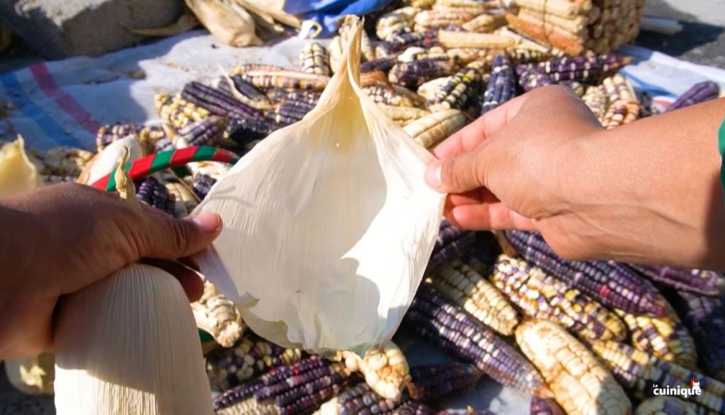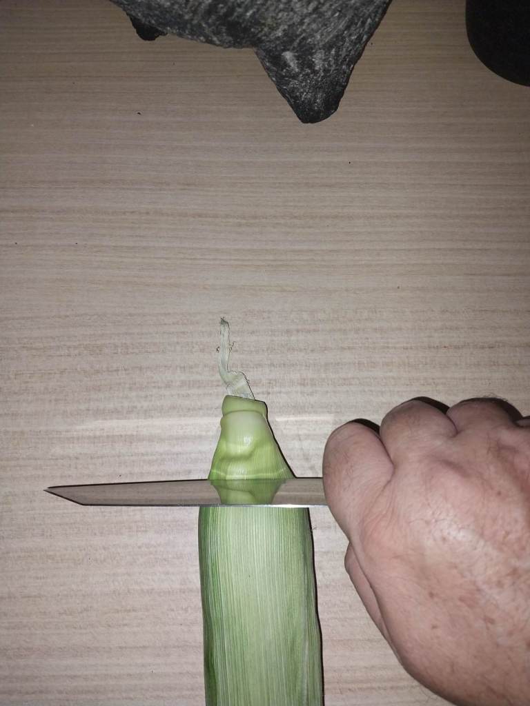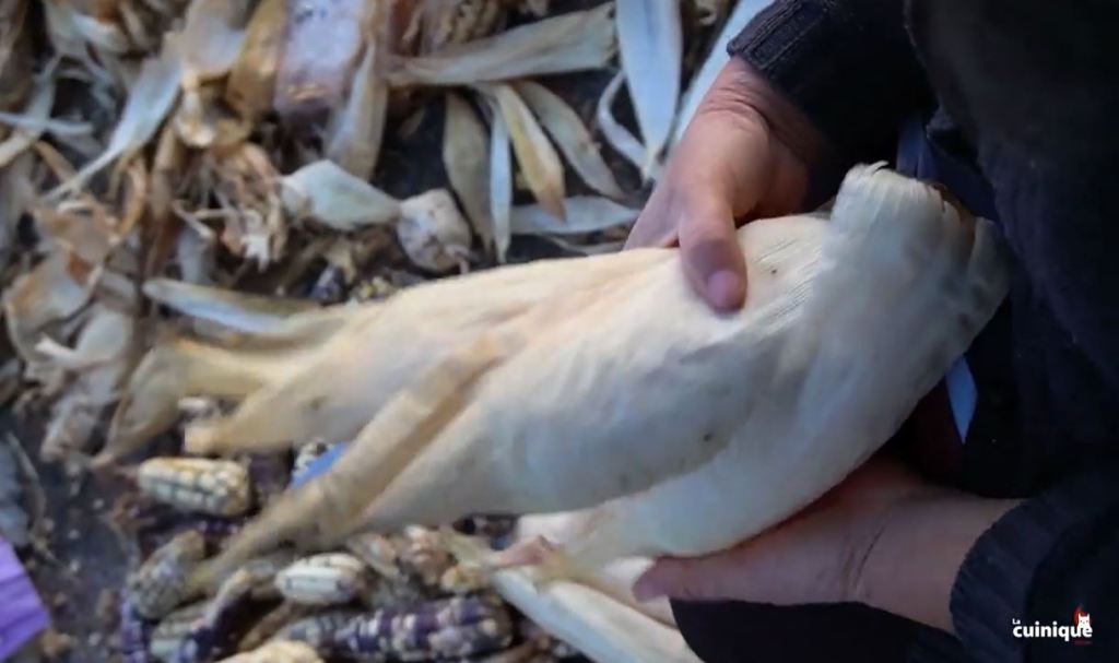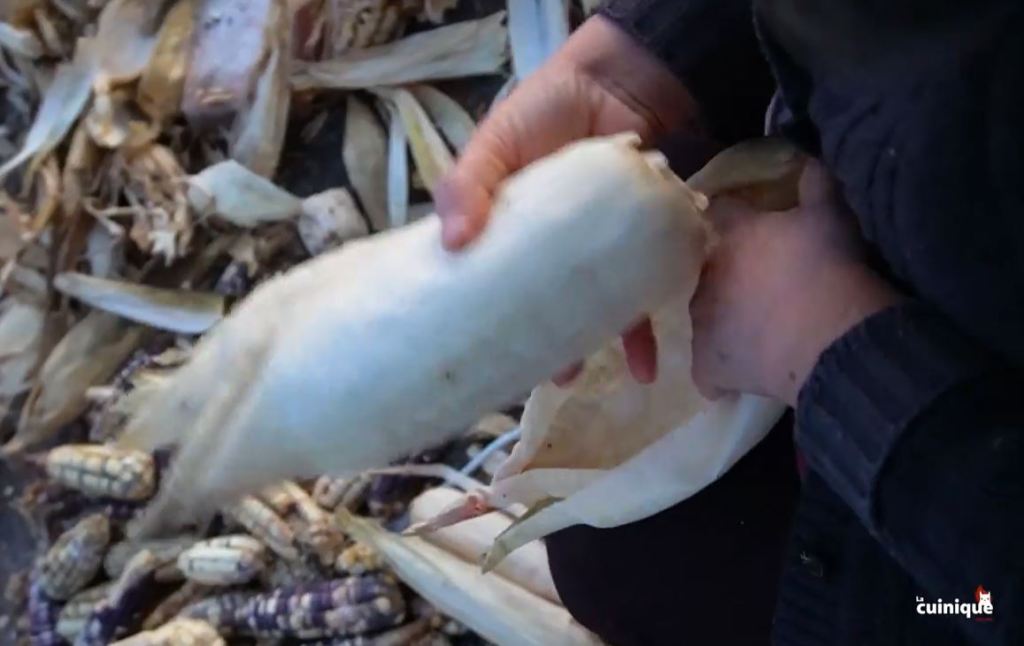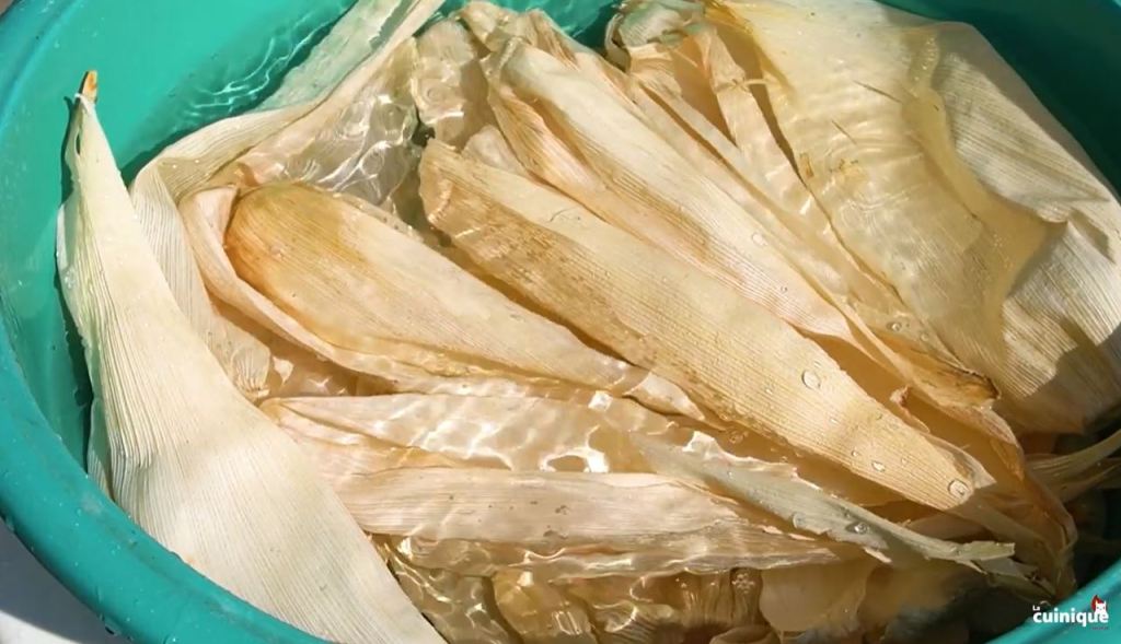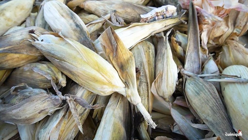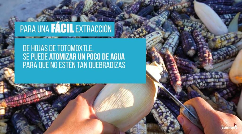 La cuinique@FabiolaCatalan on YouTube (and Facebook)(1) shows us how to harvest and prepare totomoxtle (hojas para tamales) the dried corn husks used to wrap tamales before steaming them.