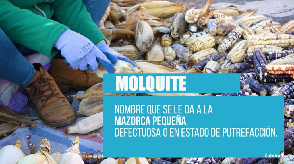 A dictionary of the Pipil Language of El Salvador (Campbell 1985) notes the word as “mulki:-t mulquite (mazorca chiquita, no crecida) : small, not fully grown ear of corn : muhmulkixt (pl.)” which refers less to the manner of how the maiz was harvested (see below) and that the corn cob itself had not properly developed by harvest time.