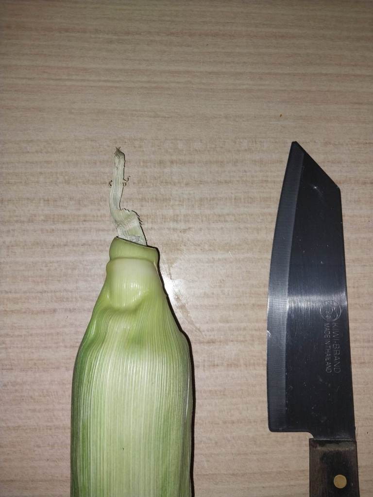 You can speed up the process by cutting the leaves at the base of the cob. Run your (very sharp) knife around the base of the cob cutting through to the stem.