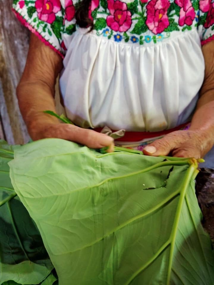 Devein the paxnikaka leaves, (removing all of the large ribs in the leaf like the Abuela did in the images above).