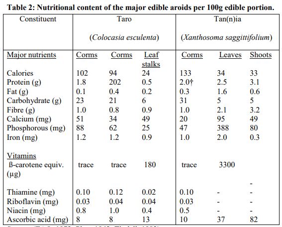 - Opara, Linus U. (2003) EDIBLE AROIDS: Post-Harvest Operation : Food and Agriculture Organization (FAO) of the United Nations : https://www.fao.org/fileadmin/user_upload/inpho/docs/Post_Harvest_Compendium_-_Edible_aroids.pdf