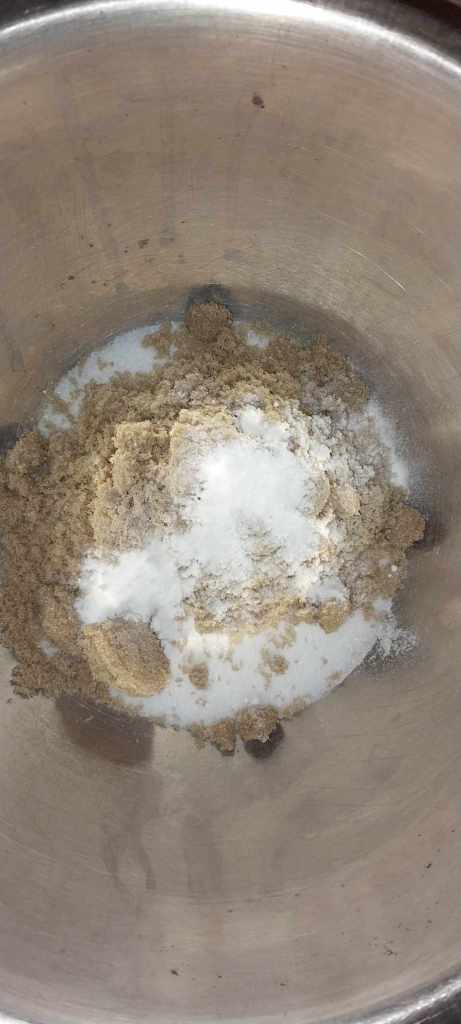 - Step 3: In a separate bowl, toss the granulated sugar, light brown sugar, kosher salt, and baking soda to combine.