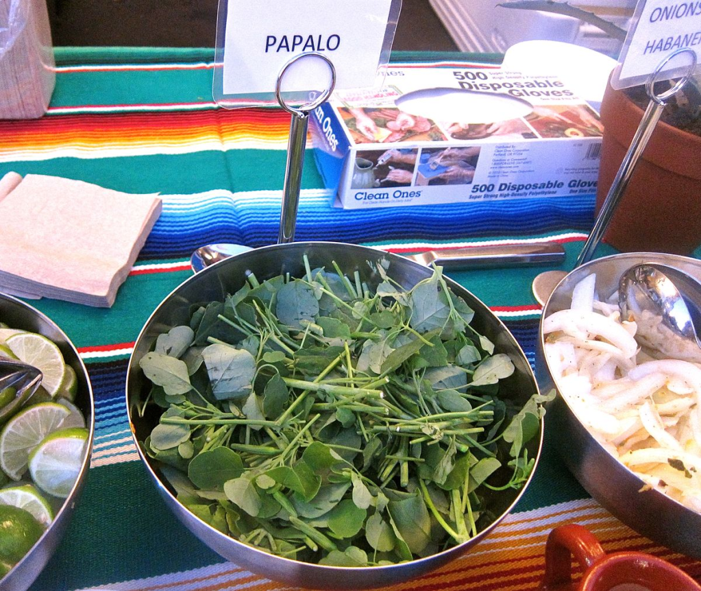 This papalo was supplied by the Aqui Es Texcoco taco stand at the TASTE OF MÉXICO 2015 held at the Plaza de Cultura y Artes, a Mexican-American museum and cultural centre in Los Angeles, California. They “paired it” with lamb barbacoa tacos.