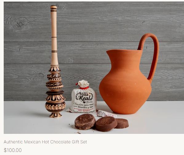 The company that makes the molinillo I am interested in was founded by two middle class white American (los estados unidos) women who have worked in the “gift industry” for 27 years and who became “disillusioned with the mass-produced products prevalent in the marketplace” so they decided to create a brand “based on life’s passions: cooking, entertaining, travel and, those cherished moments, and lasting memories with family, friends.” (This is starting to sound like Matthew McConaughey’s tequila Celebrity Tequila : A New Chapter?)