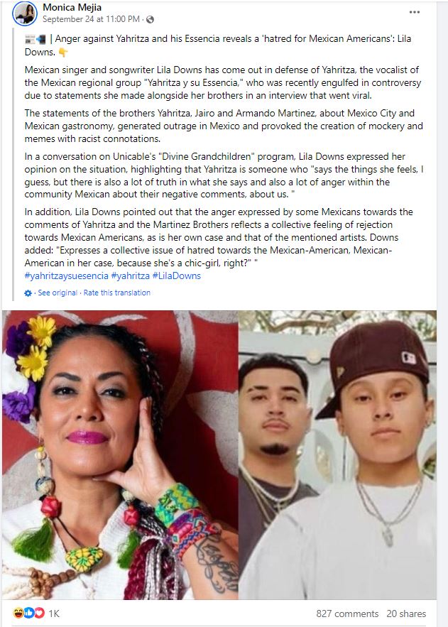 México loves it when you appreciate her culture, not so much when you appropriate it. Some of the shade thrown Yahritza’s way also demonstrated the complexity of mestizaje mejico.