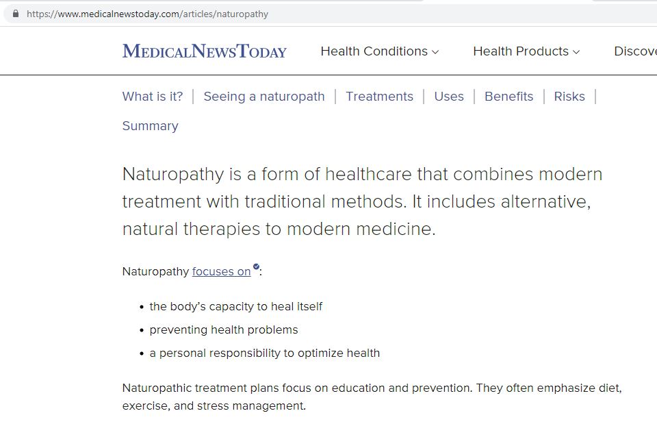This article was most likely sponsored by (or even directly written by) an (extremely biased) proponent of modern allopathic medicine. It states that “Naturopathy is considered by the medical profession to be ineffective and harmful, raising ethical issues about its practice” and that “Naturopathy as a whole lacks an adequate scientific basis, and it is rejected by the medical community”. The rejection by the medical community I think is also misrepresented. It is rejected by the governing bodies of medicine but, by the doctors themselves? Not as much. A doctor who genuinely cares for their patients will try “off label” therapies if they believe it may help their patient. They will not however discuss it openly in a (medically biased) forum of their peers for fear of being ostracised by their own community. This hypocrisy is not uncommon (and is vital for the doctor if they wish to keep practising under the current regimes). The apothecaries (pharmacists) do not give a fuck. They will sell anything if it brings in the filthy lucre.